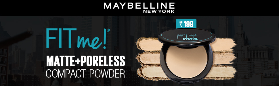 - The Maybelline Fit Me Matte+Poreless Compact Powder mattifies skin for a natural, poreless finish.